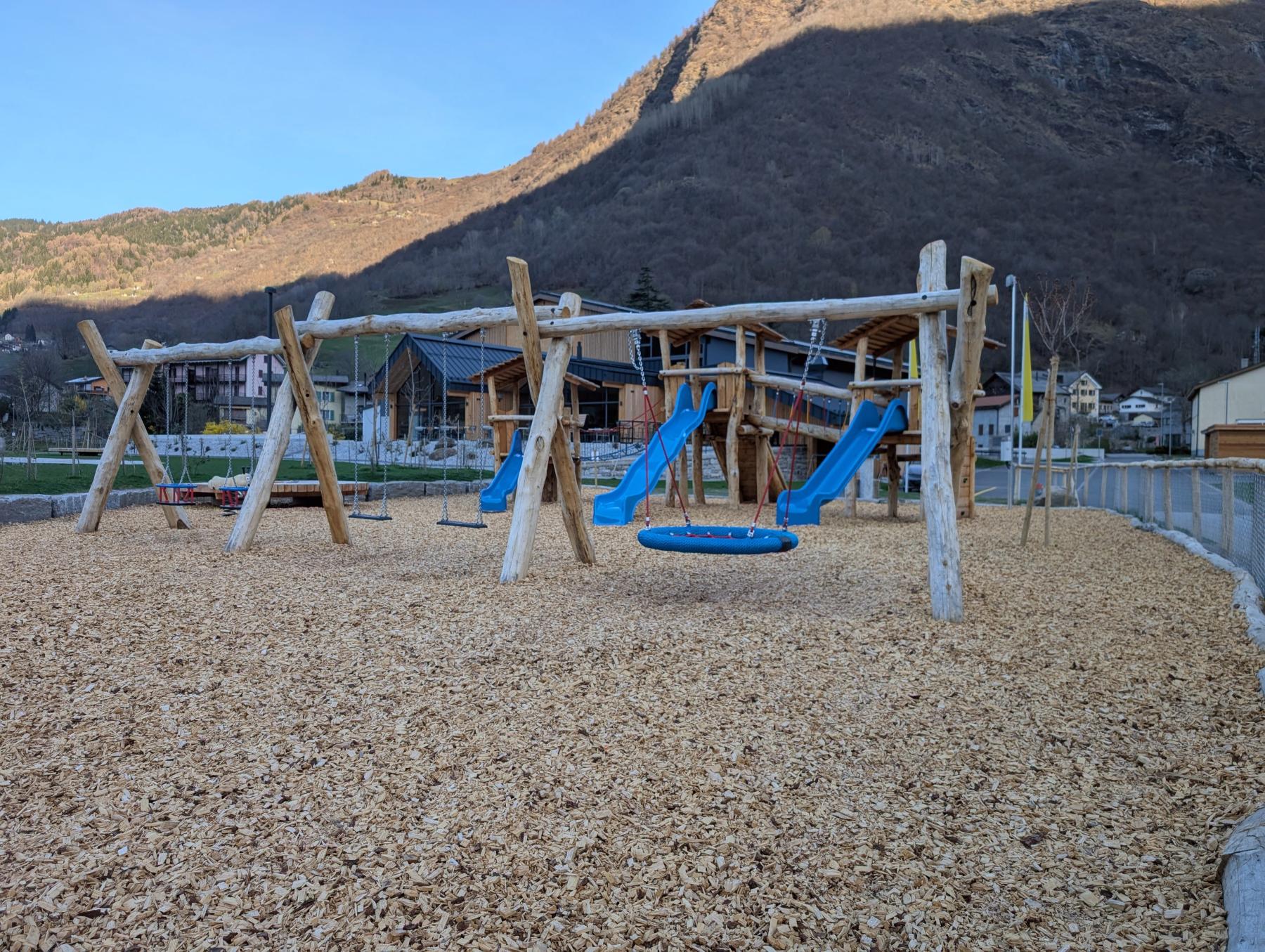 Il parco giochi si trova accanto al Centro POLI di Olivone, in una zona tranquilla e facilmente accessibile. Un luogo ideale per trascorrere qualche ora all’aria aperta, circondati dal verde e dalle montagne.